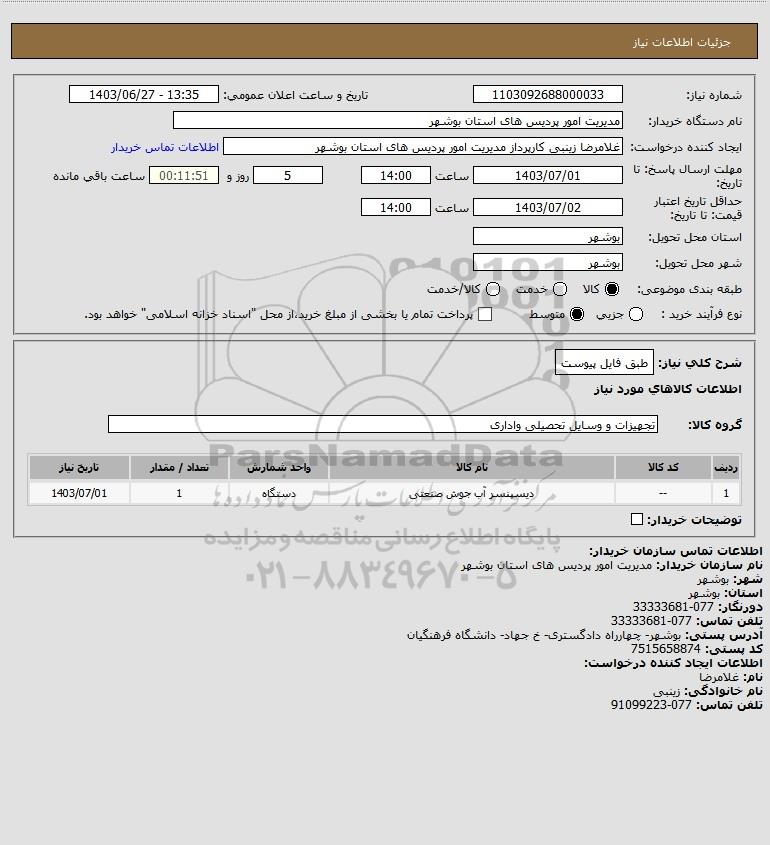 نام دستگاه خریدار:مدیریت امور پردیس های استان بوشهر