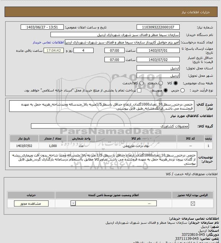| 1 | -- | نهال درخت مخروطی | عدد | 1,000 | 1403/07/02 |