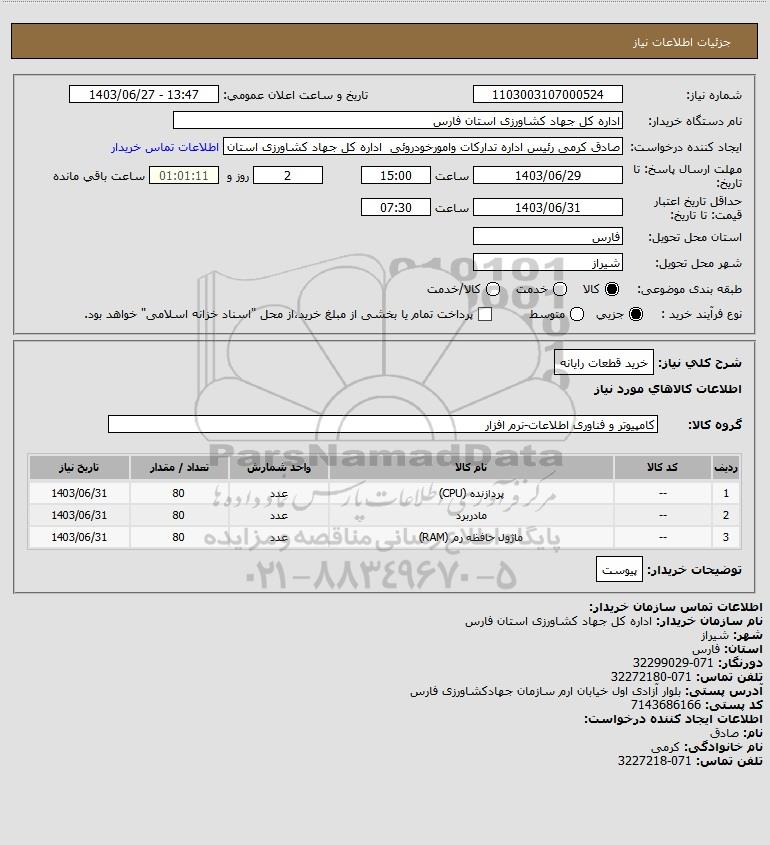 نام دستگاه خریدار:اداره کل جهاد کشاورزی استان فارس