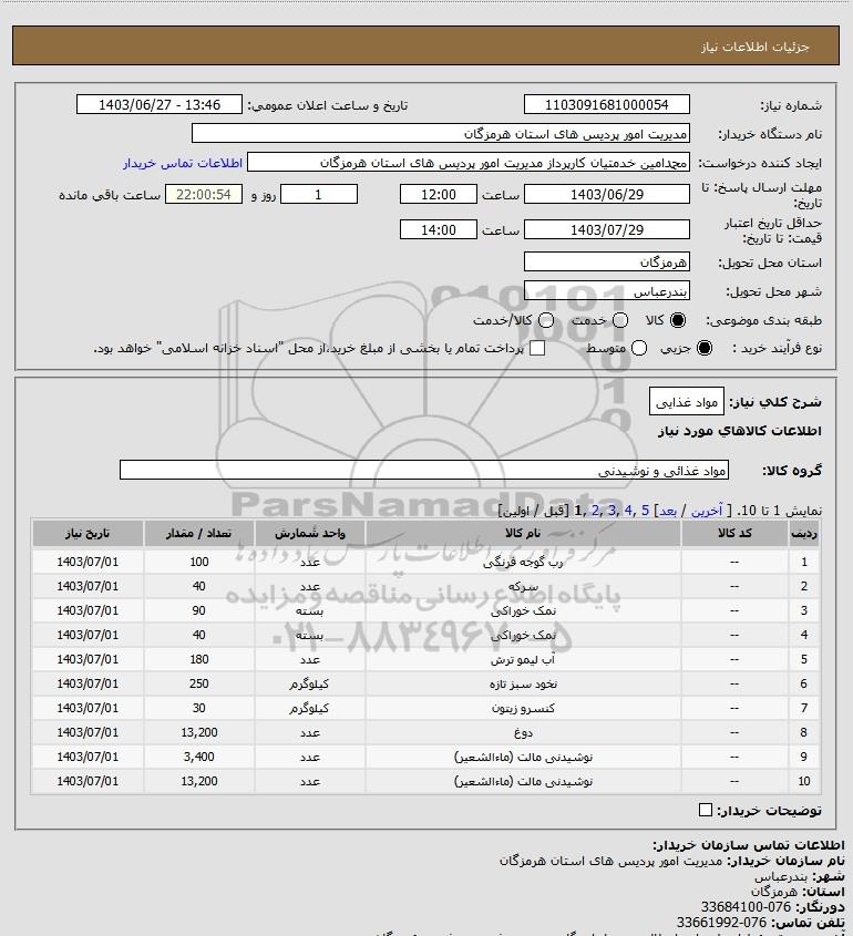 | 7 | -- | کنسرو زیتون | کیلوگرم | 30 | 1403/07/01 |