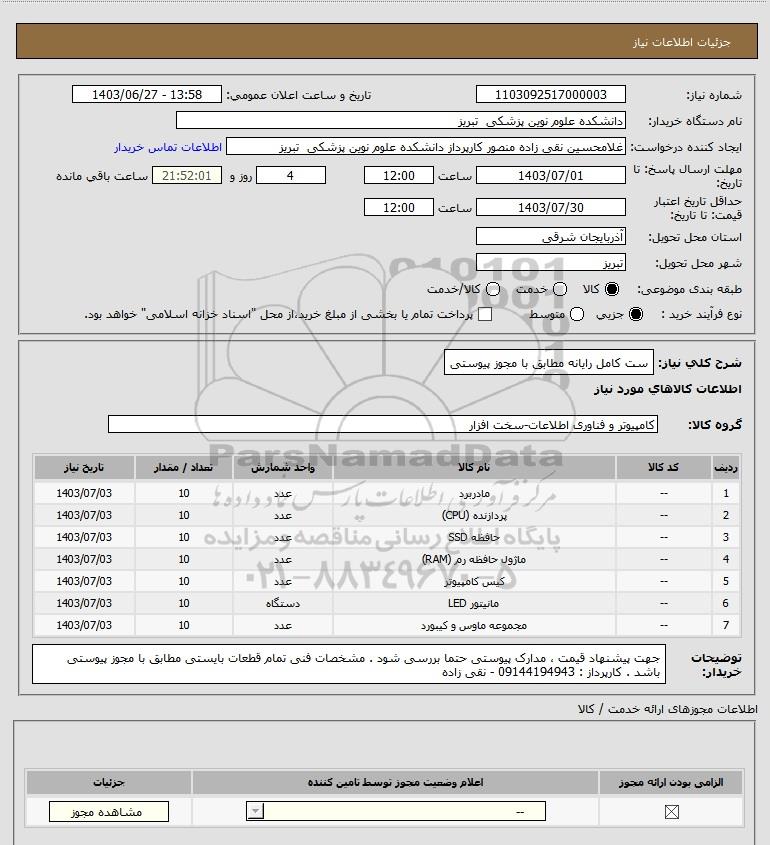 شرح کلی نیاز: ست کامل رایانه مطابق با مجوز پیوستی