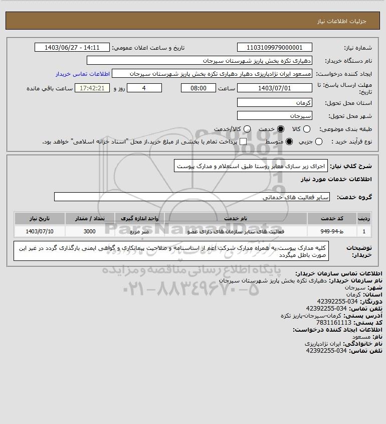 نام دستگاه خریدار:دهیاری تکزه بخش پاریز شهرستان سیرجان