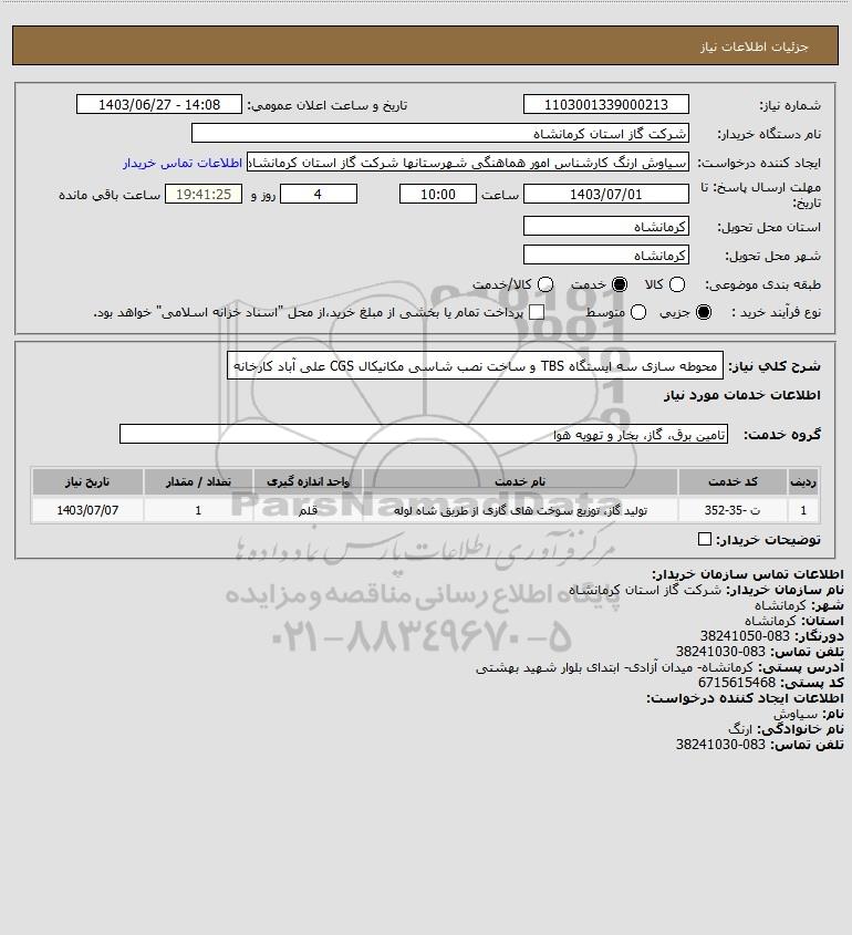 نام سازمان خریدار: شرکت گاز استان کرمانشاه
