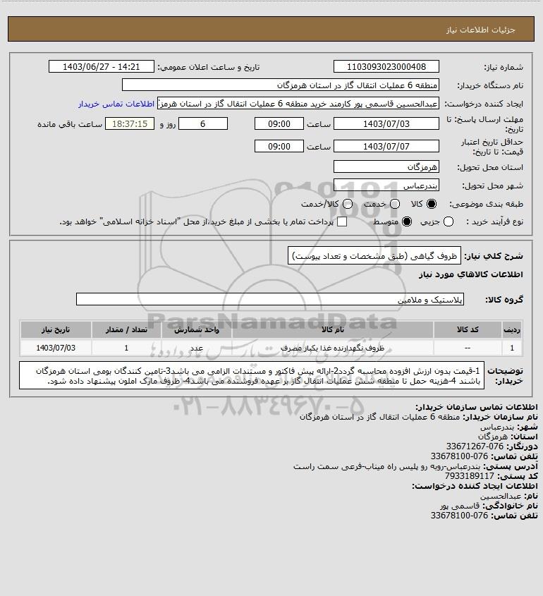 استعلام ظروف گیاهی (طبق مشخصات و تعداد پیوست), استعلام ظروف گیاهی (طبق مشخصات و تعداد پیوست)