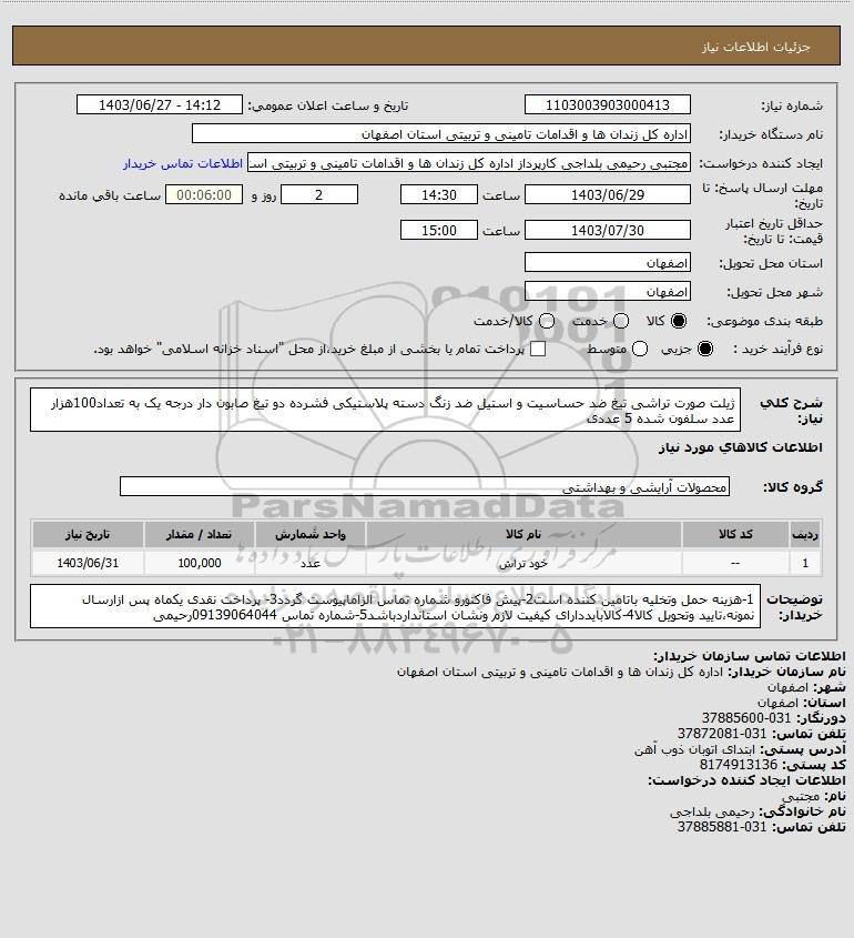 استعلام ژیلت صورت تراشی تیغ ضد حساسیت و استیل ضد زنگ دسته پلاستیکی فشرده دو تیغ صابون دار درجه یک به تعداد100هزار عدد سلفون شده 5 عددی, استعلام ژیلت صورت تراشی تیغ ضد حساسیت و استیل ضد زنگ دسته پلاستیکی فشرده دو تیغ صابون دار درجه یک به تعداد100هزار عدد سلفون شده 5 عددی