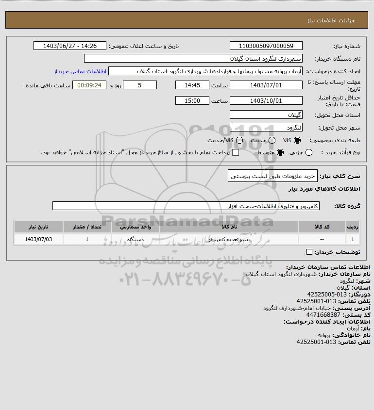 نام دستگاه خریدار:شهرداری لنگرود استان گیلان