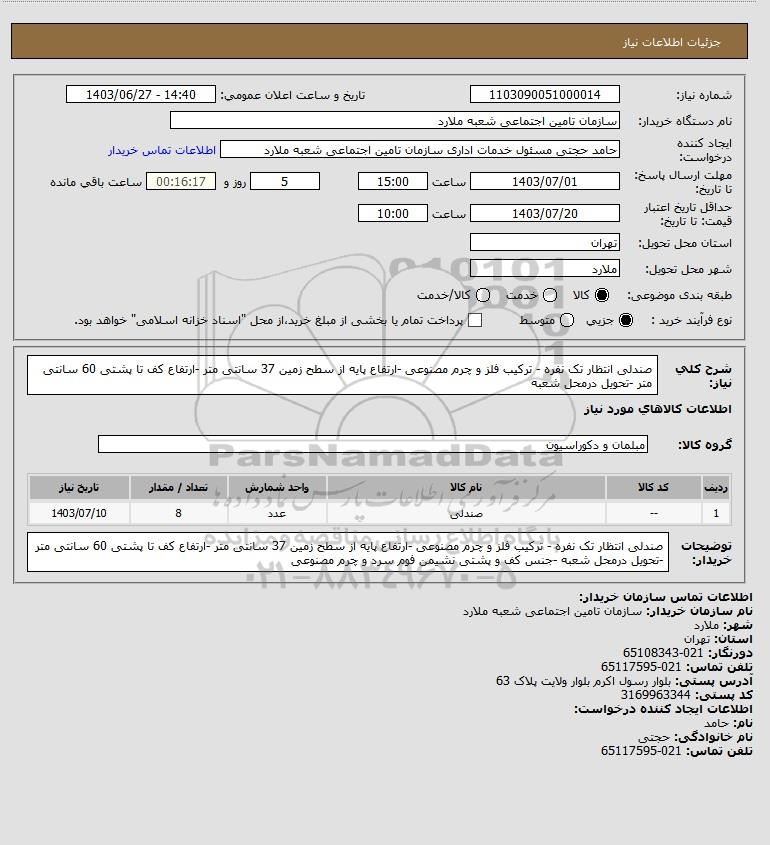 نام سازمان خریدار: سازمان تامین اجتماعی شعبه ملارد
