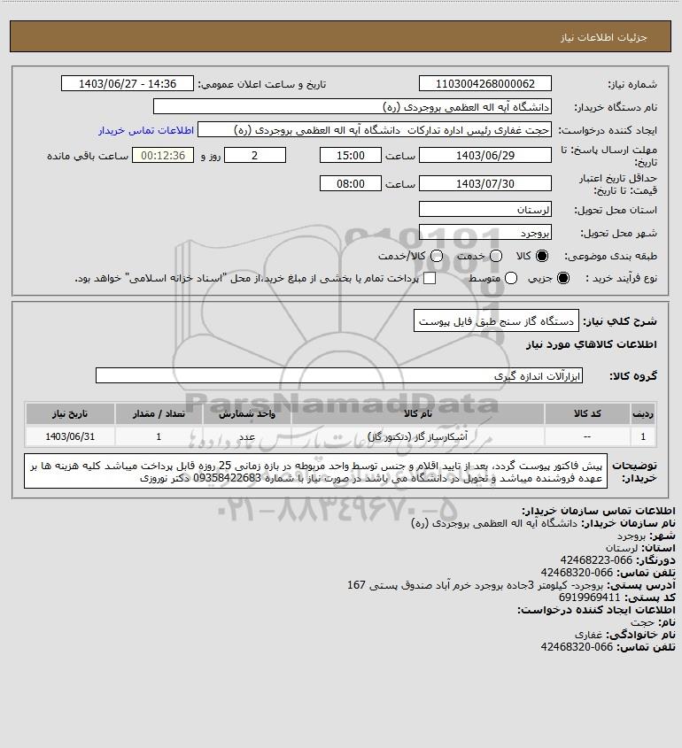 نام دستگاه خریدار:دانشگاه آیه اله العظمی بروجردی (ره)