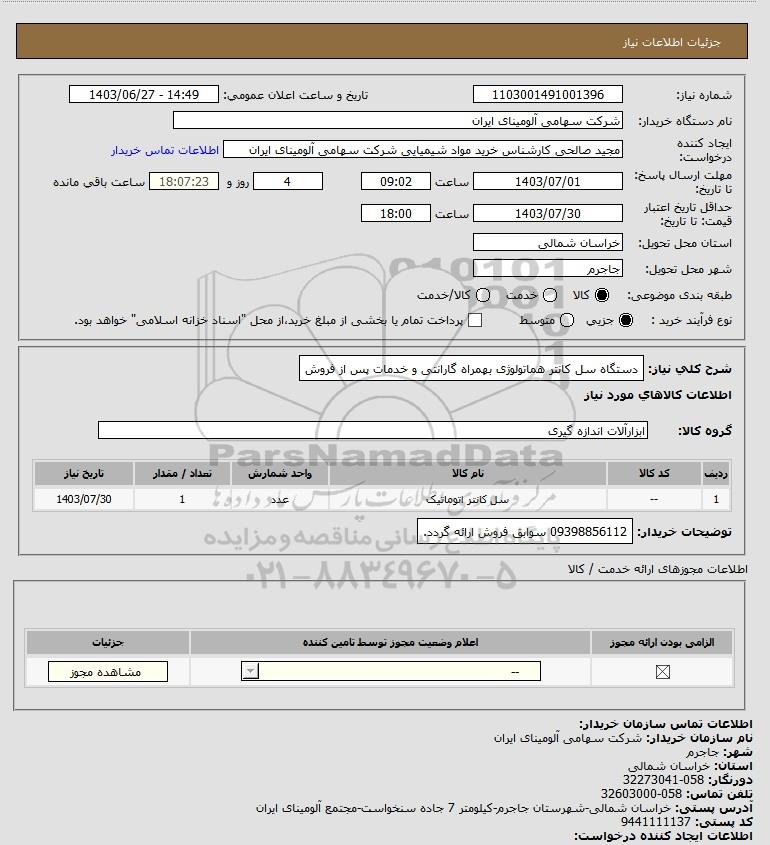 | 1 | -- | سل کانتر اتوماتیک | عدد | 1 | 1403/07/30 |