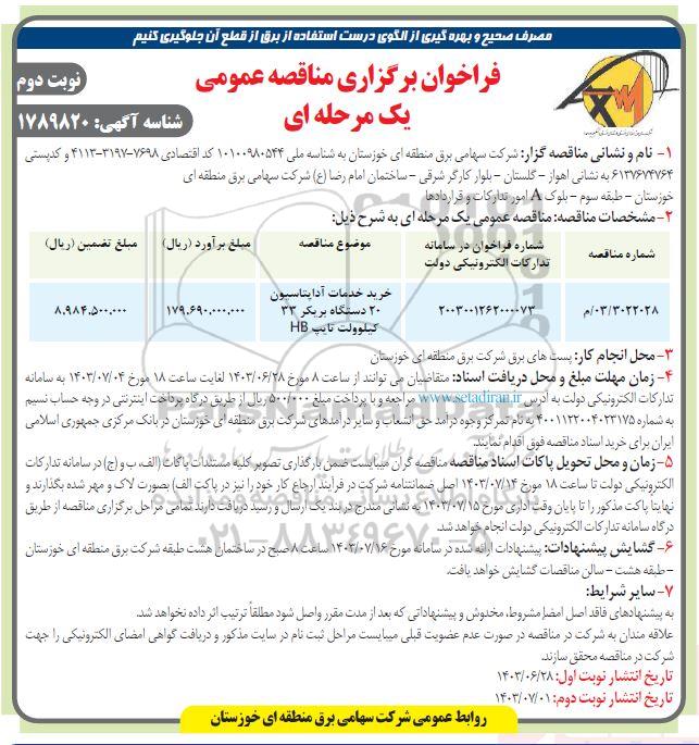 3022028/ 03 / م  2003001262000073 خرید خدمات آداپتاسیون 20 دستگاه بریکر
