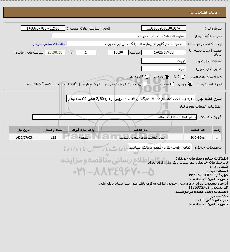 نام دستگاه خریدار:بیمارستان بانک ملی ایران تهران