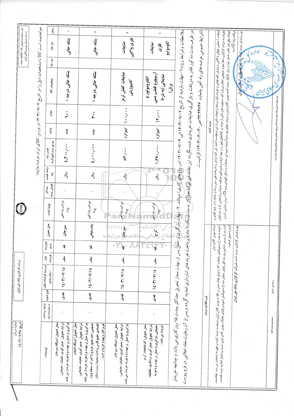 | 1 | بشکه خالی | بشکه خالی درجه 1 | 600 | عدد | 4.200.000 | سیرجان |