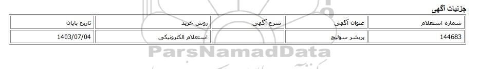 | 144683 | پریشر سوئیچ | استعلام الکترونیکی | 1403/07/04 |