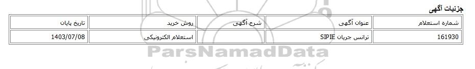 | 161930 | ترانس جریان SIPIE | استعلام الکترونیکی | 1403/07/08 |