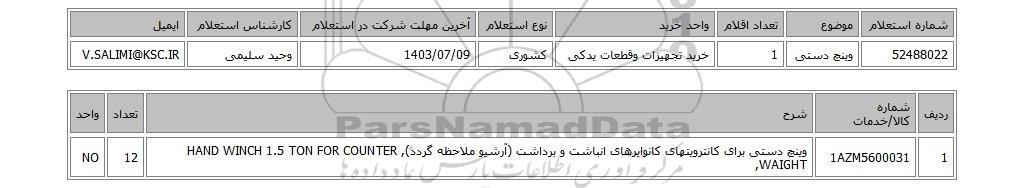 52488022وینچ دستی1خرید تجهیزات وقطعات یدکیکشوری1403/07/09وحید سلیمیV.SALIMI@KSC.IR