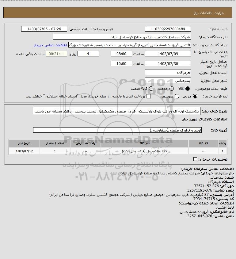 نام دستگاه خریدار:شرکت مجتمع کشتی سازی و صنایع فراساحل ایران