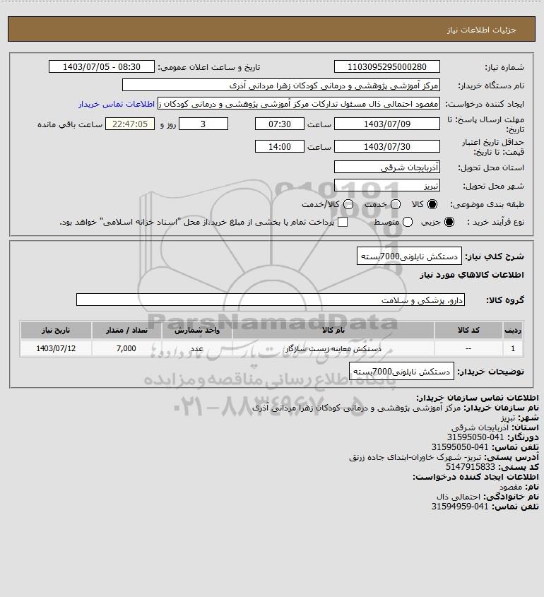 شرح کلی نیاز: دستکش نایلونی7000بسته