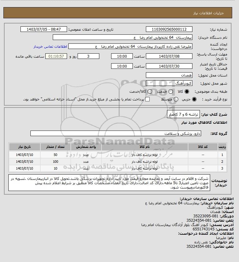 | 1 | -- | لوله تراشه کاف دار | عدد | 50 | 1403/07/10 |