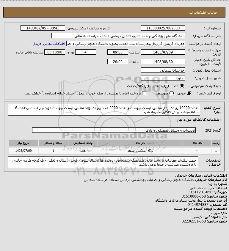 نام دستگاه خریدار:دانشگاه علوم پزشکی و خدمات بهداشتی درمانی استان خراسان شمالی