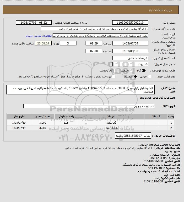 نام سازمان خریدار: دانشگاه علوم پزشکی و خدمات بهداشتی درمانی استان خراسان شمالی