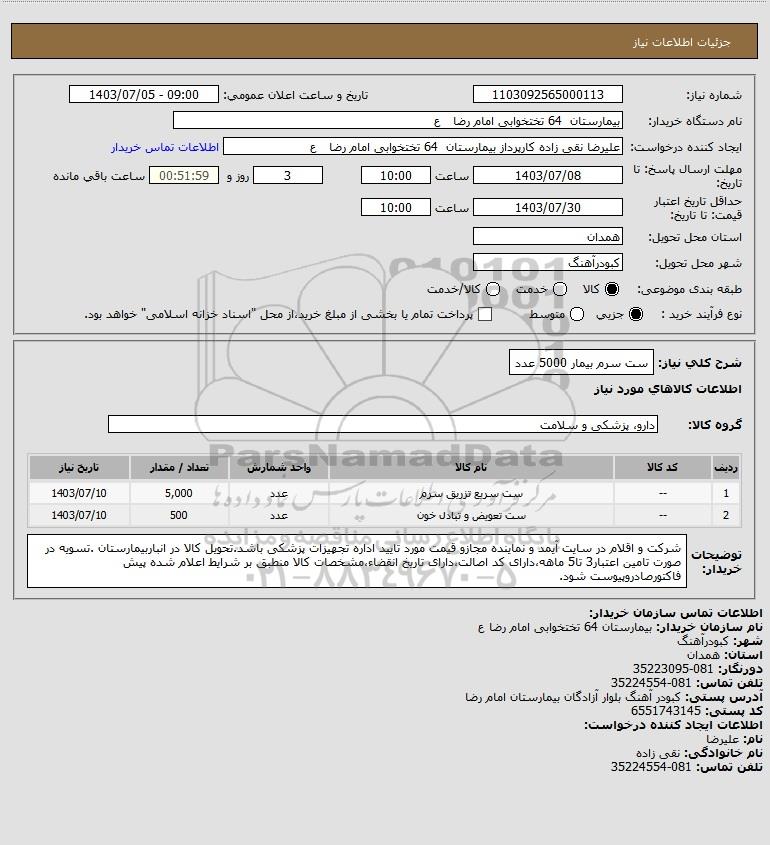 شرح کلی نیاز: ست سرم بیمار 5000 عدد