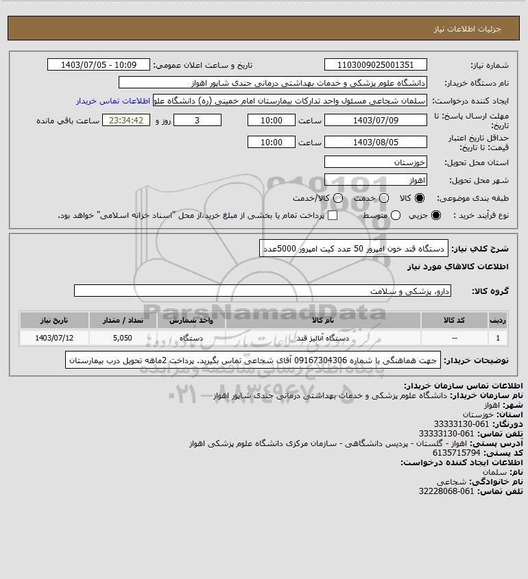نام دستگاه خریدار:دانشگاه علوم پزشکی و خدمات بهداشتی درمانی جندی شاپور اهواز