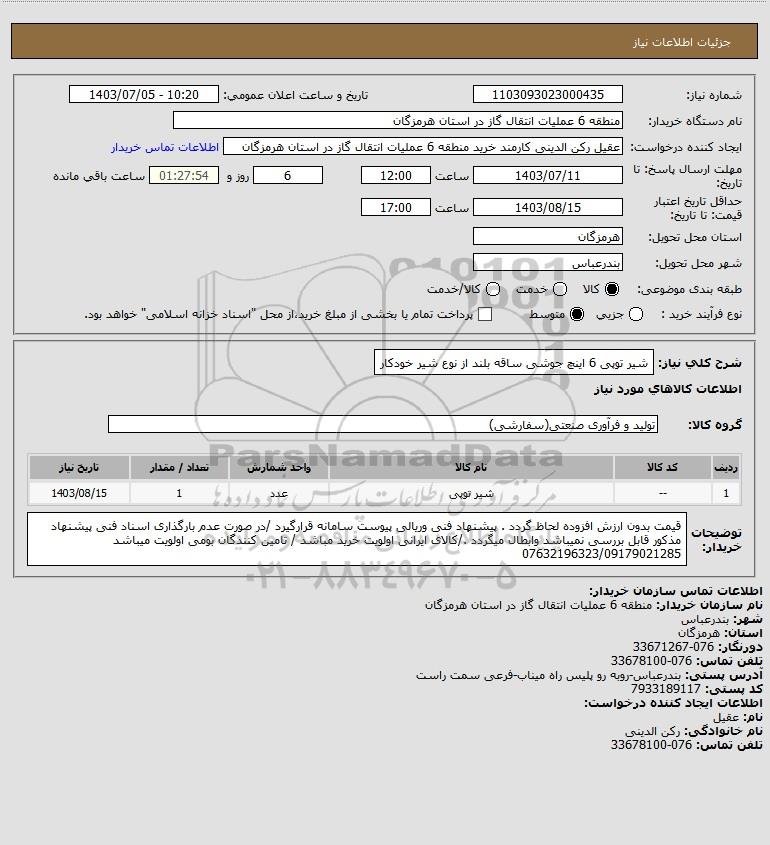 شرح کلی نیاز: شیر توپی 6 اینچ جوشی ساقه بلند از نوع شیر خودکار