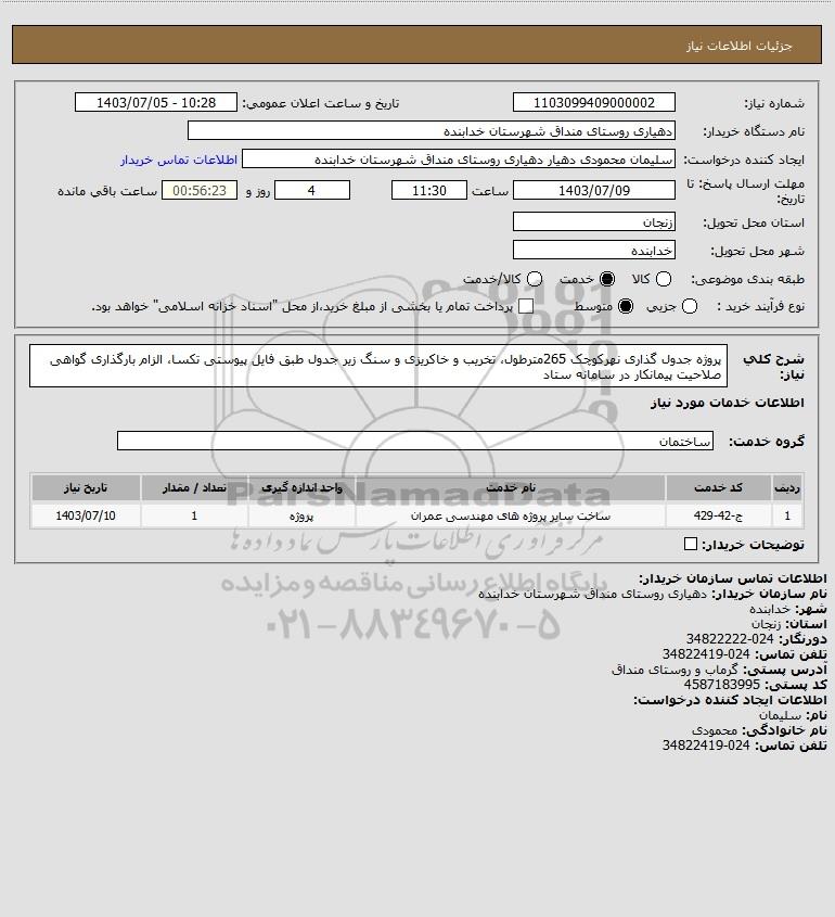 نام دستگاه خریدار:دهیاری روستای منداق شهرستان خدابنده