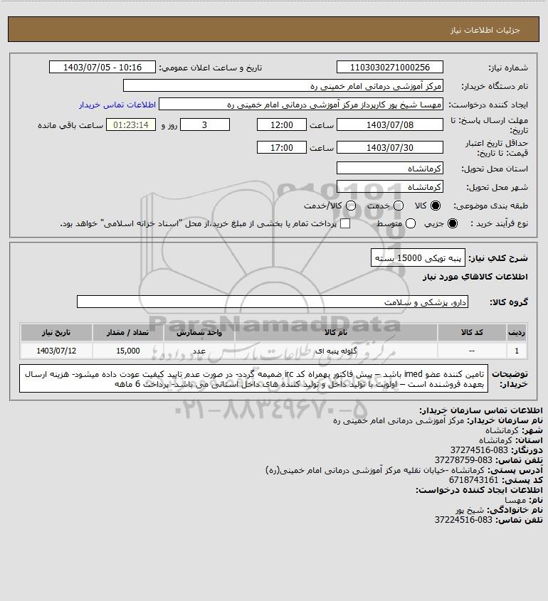 شرح کلی نیاز: پنبه توپکی 15000 بسته