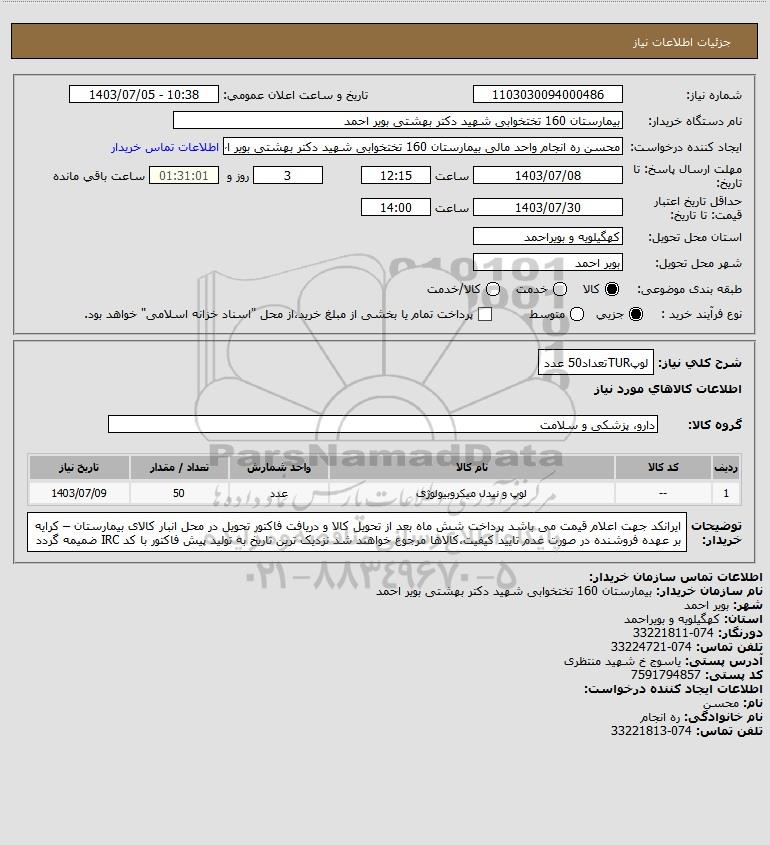 | 1 | -- | لوپ و نیدل میکروبیولوژی | عدد | 50 | 1403/07/09 |