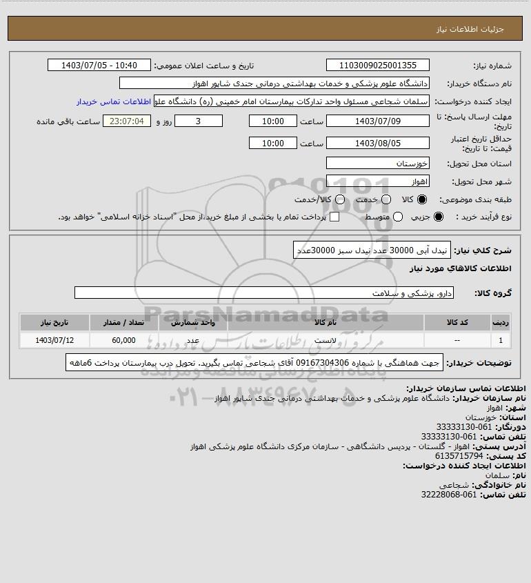 نام سازمان خریدار: دانشگاه علوم پزشکی و خدمات بهداشتی درمانی جندی شاپور اهواز