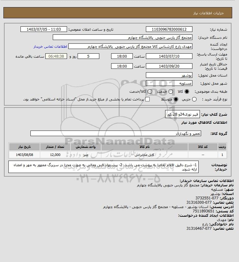 شرح کلی نیاز: فیبر نوری24و 28 کور