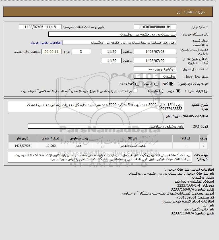شرح کلی نیاز: تیوپ 15ml ته گرد 5000 عدد-تیوپ 5ml ته گرد 5000 عدد-مورد تایید اداره کل تجهیزات پزشکی-مهندس احمدی 09177423533