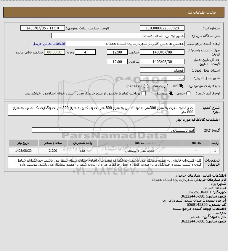 نام دستگاه خریدار:شهرداری رزن استان همدان
