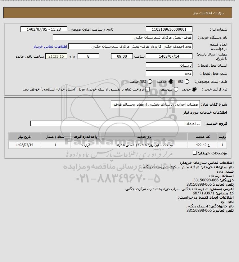 نام سازمان خریدار: هرفته بخش مرکزی شهرستان چگنی