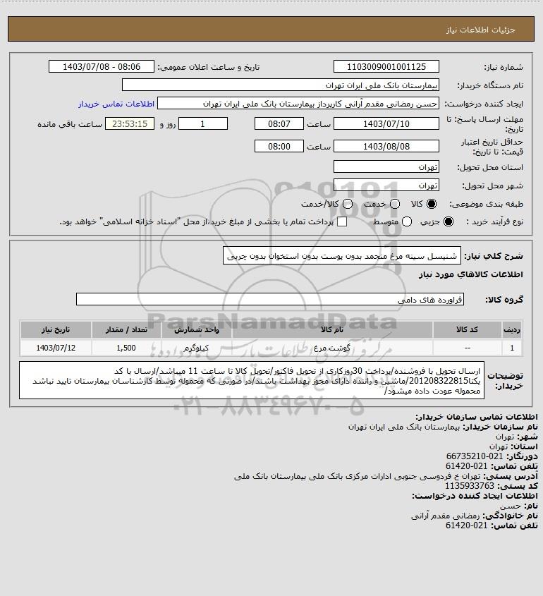 نام سازمان خریدار: بیمارستان بانک ملی ایران تهران