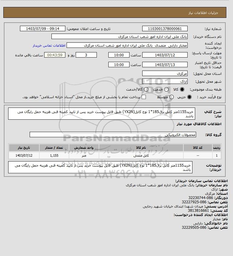 نام دستگاه خریدار:بانک ملی ایران اداره امور شعب استان مرکزی