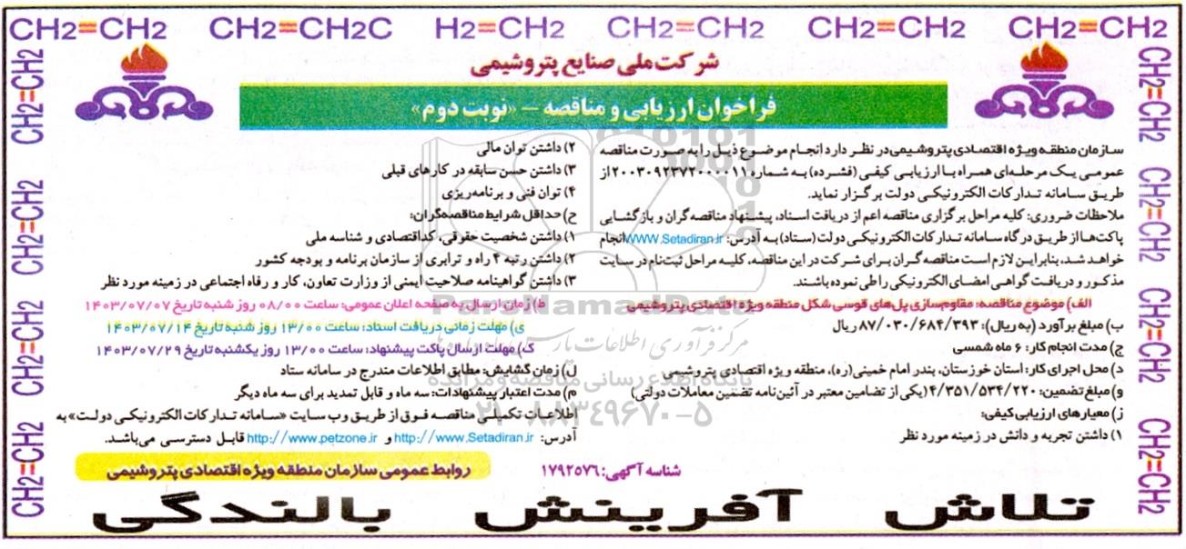 الف) موضوع مناقصه : مقاوم سازی پل های قوسی شکل منطقه ویژه اقتصادی پتروشیمی