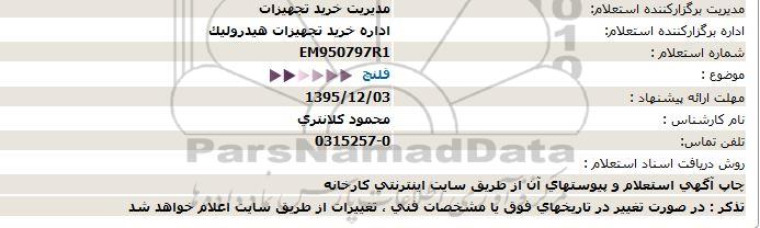 اداره برگزارکننده استعلام: اداره خرید تجهیزات هیدرولیك