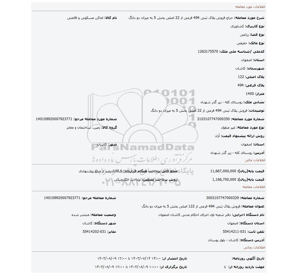 | شماره مورد معامله: 3103107747000350 | شماره مورد معامله مرجع: 140109920007923771 | |