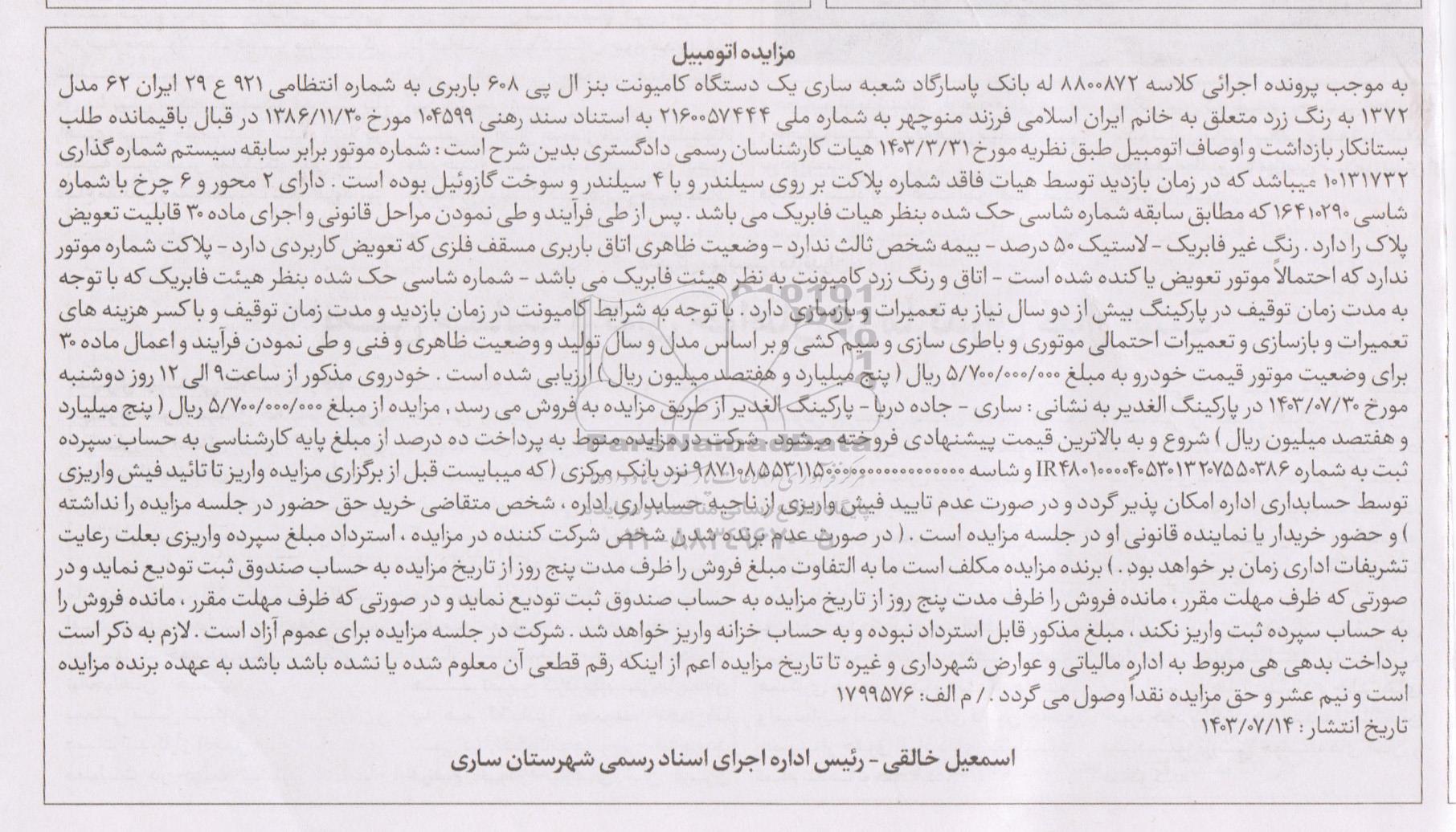 زمان مزایده ساعت 9 الی 12 روز دوشنبه مورخ 1403.07.30