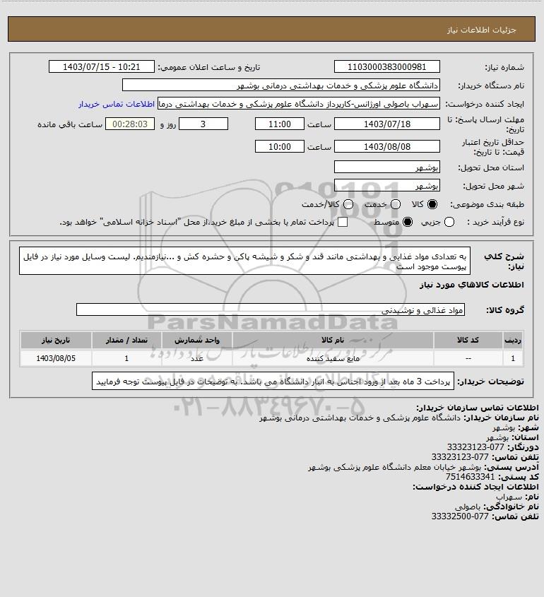 نام سازمان خریدار: دانشگاه علوم پزشکی و خدمات بهداشتی درمانی بوشهر