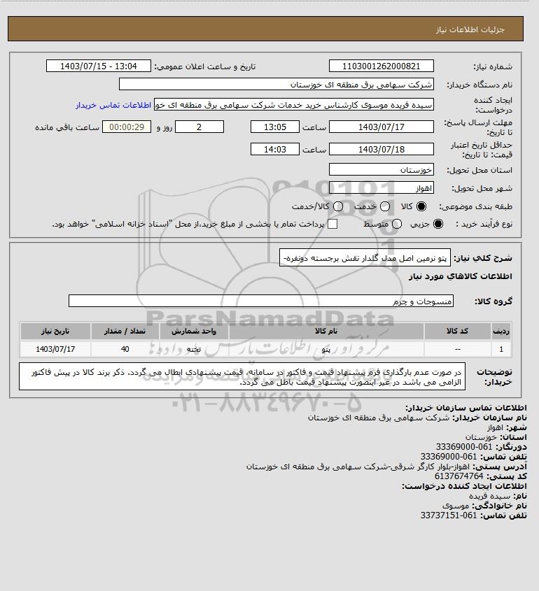 نام سازمان خریدار: شرکت سهامی برق منطقه ای خوزستان