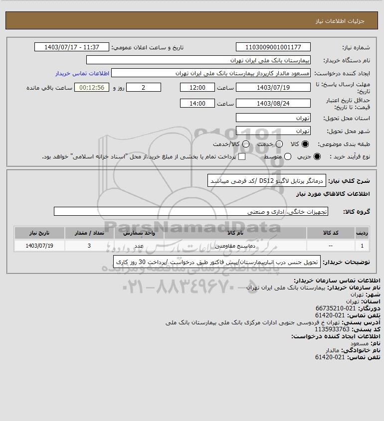 شرح کلی نیاز: درمانگر پرتابل لاگینو DS12 /کد فرضی میباشد