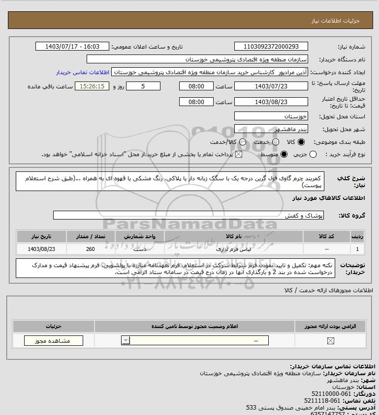 10 استعلام خرید کفش فرم اداری 1404 9816928 1404/08/17 new not special not payed خراسان رضوی