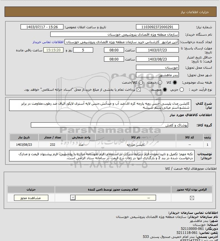 نام دستگاه خریدار:سازمان منطقه ویژه اقتصادی پتروشیمی خوزستان
