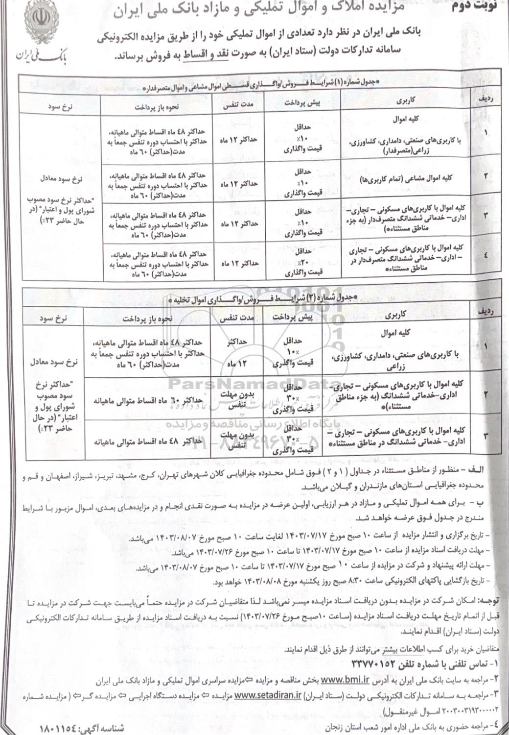 مزایده املاک و اموال تملیکی و مازاد بانک ملی ایران ؟