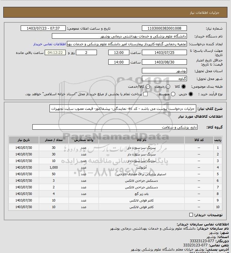 نام سازمان خریدار: دانشگاه علوم پزشکی و خدمات بهداشتی درمانی بوشهر