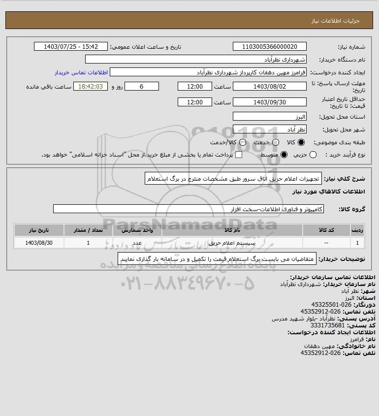 نام دستگاه خریدار:شهرداری نظرآباد