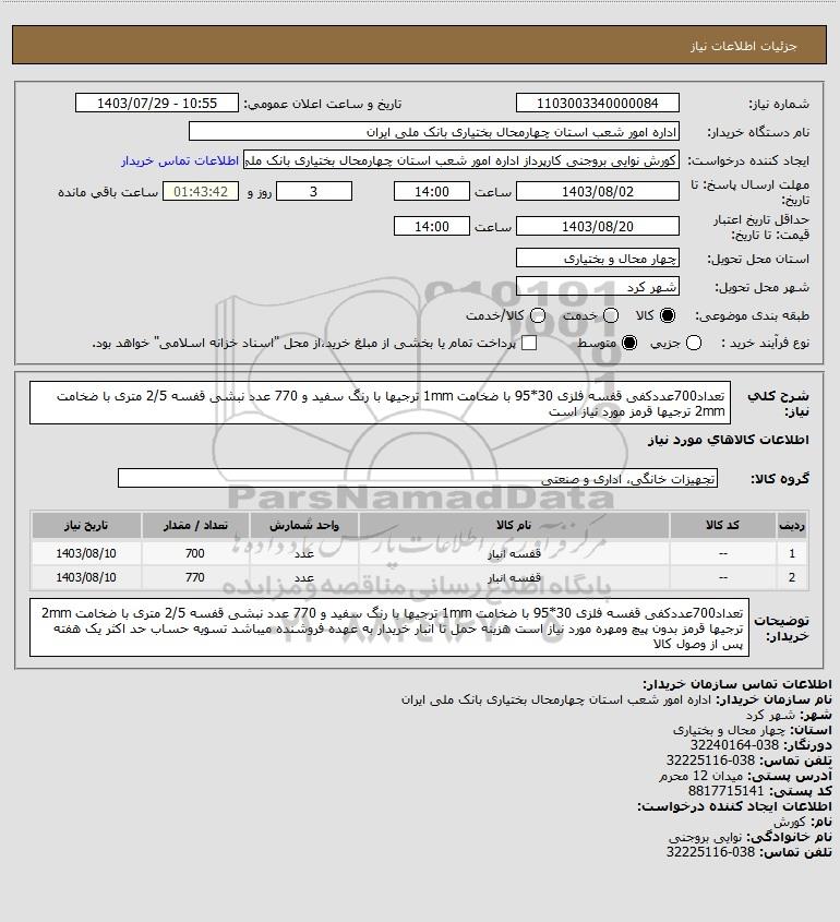 نام دستگاه خریدار:اداره امور شعب استان چهارمحال بختیاری بانک ملی ایران